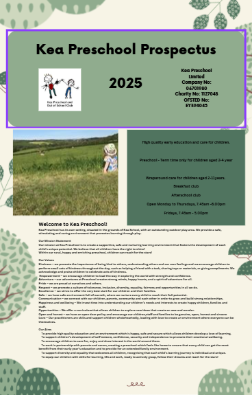Kea Preschool Prospectus September 2025 (click to follow link)
